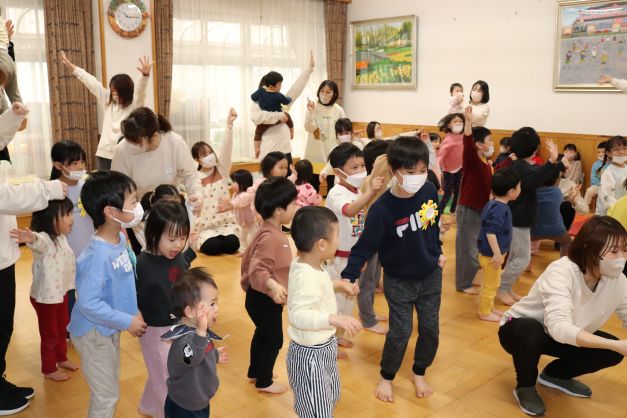 お別れ会があり、全園児で年長らいおん組の卒園をお祝いしました。