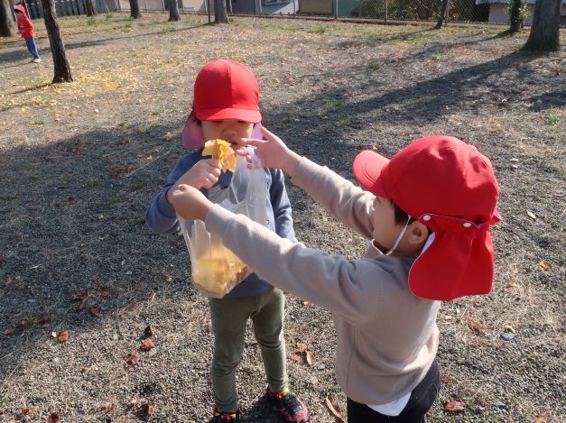 子ども達の葉を集める手は止まりません。