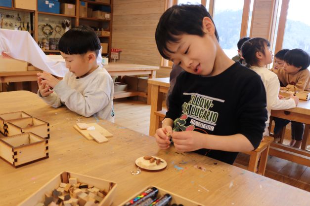 木材や木の実、枝などを組み合わせて、作る楽しさを感じていたようでした。