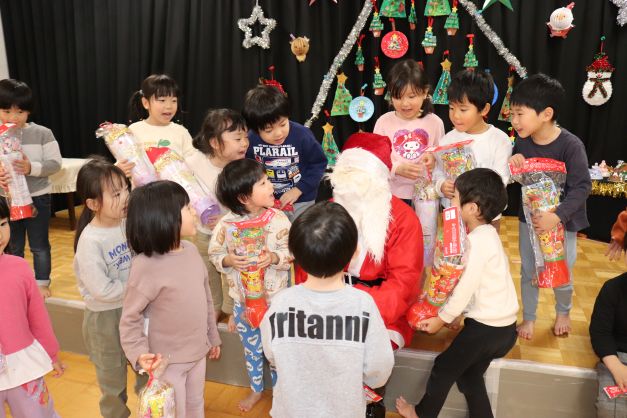 少々早いクリスマスではありますが、あさむつこども園では本日、サンタクロースがやってきてくれてプレゼント渡しがありました。