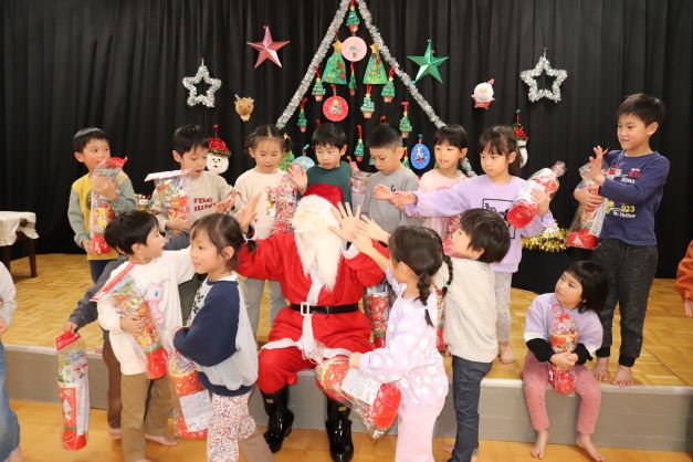 2,3,4,5歳児さんもクリスマスソングを歌いながら、今か今かと待っていました。