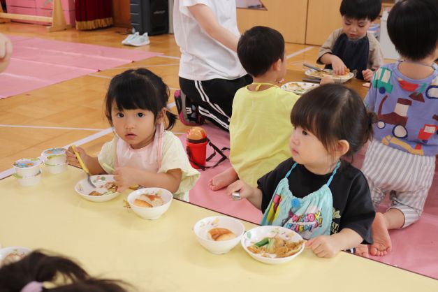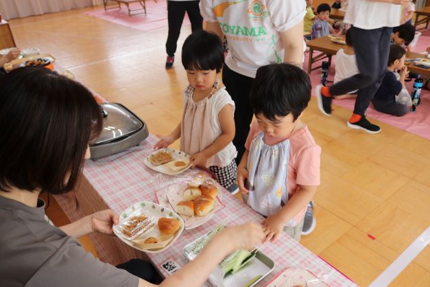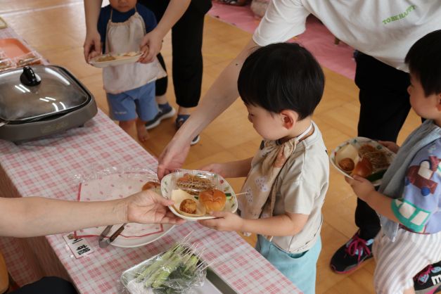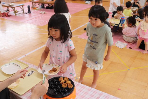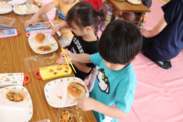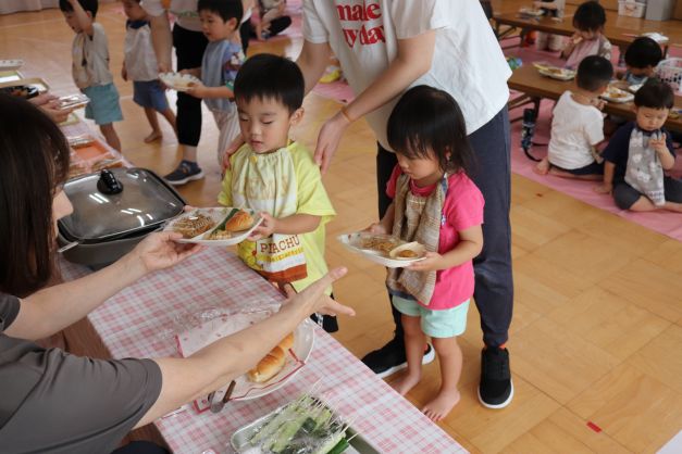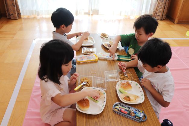 9月10日の給食はホールで屋台ごっこを楽しみました。