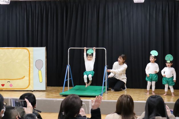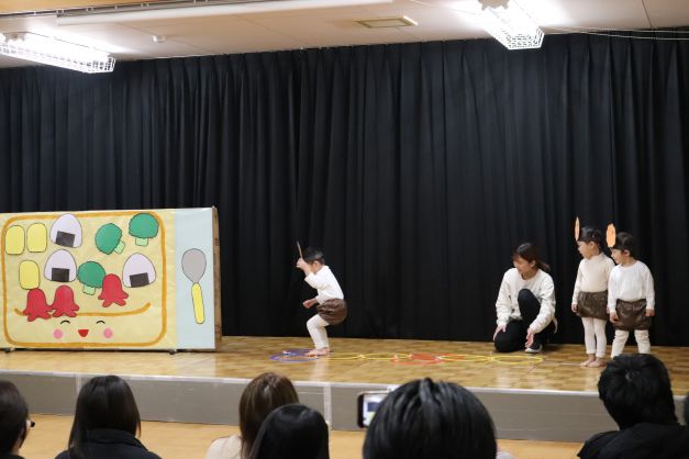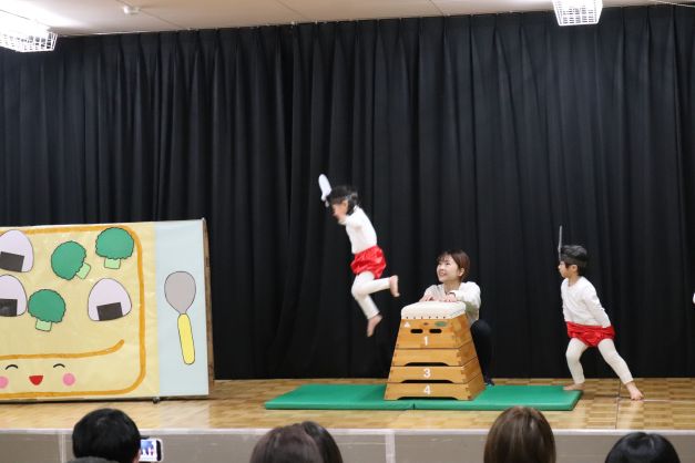 お弁当の具材に変身して、様々な運動遊びを見せてくれました。