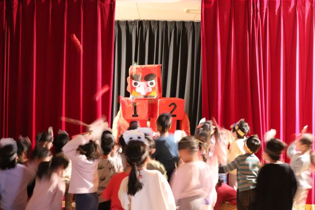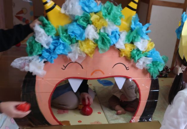 「おにはそと、ふくはうち!」と元気な声が響き、少しドキドキしながらも、一生懸命豆まきをする姿がとても微笑ましかったです。