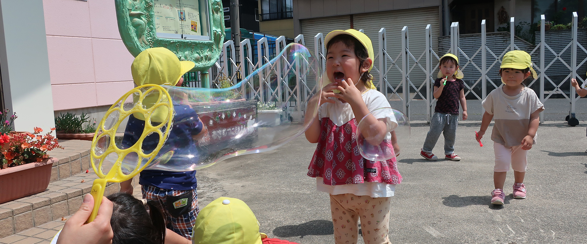 幼児期は人間形成の基礎を築く大切な時期です。当園では周囲の人々からたくさんの「愛情」を受け、「あそび」を通して様々な体験をする中で、試行錯誤しながら成功体験を積み「自己肯定感」を高め、お子様一人ひとりの「個性」を認め、伸ばしていくことを目標に成長のお手伝いをしています。